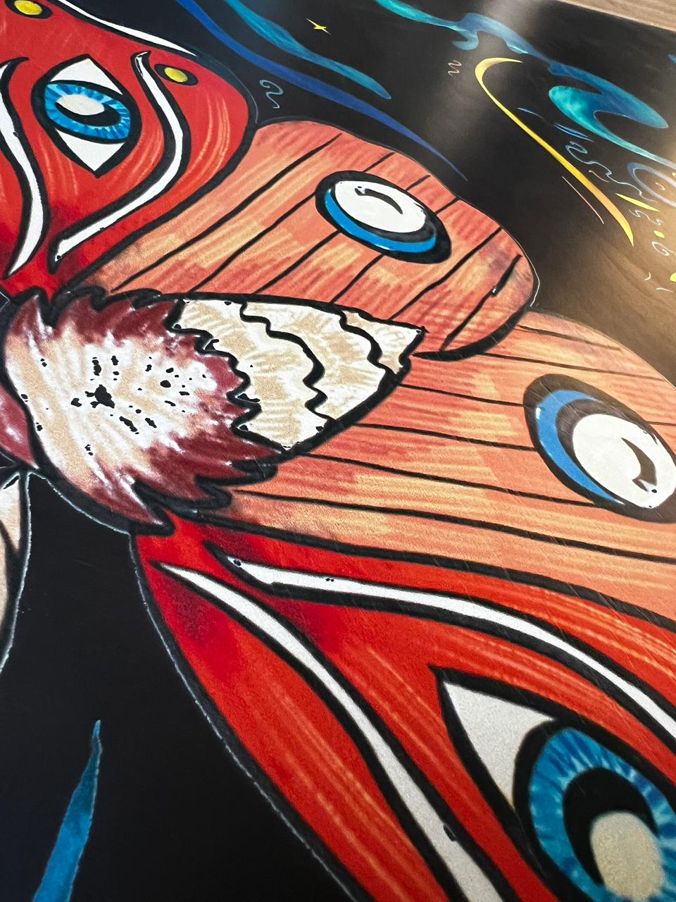 This yoga mat showcases a unique digital art design by Hala Jafar, blending artistic expression with mindful movement, turning your practice into a full sensory experience.